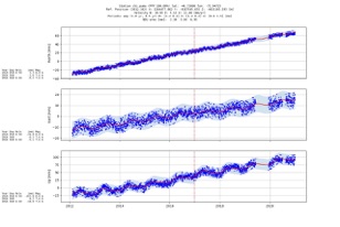 Este rápido aumento se debe a la pérdida de hielo. El peso del hielo está disminuyendo y el suelo está elevando en respuesta. La estación ha pasado de unos 4 cm negativos a unos 7 cm positivos en 7,33 años. Esa es una velocidad promedio de aproximadamente 13.6 mm/año en la dirección hacia arriba. La estación también se mueve hacia el este (2,7 mm / año) y el norte (10,9 mm / año). El ciclo anual, más evidente en la dirección hacia arriba, la tendencia general es hacia arriba. Hay evidencia de que está aumentando más rápido desde aproximadamente 2016.