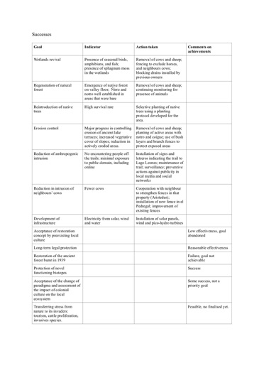 • Presence of signs of negative feedback of the socio-ecological environment (is the restoration able to reverse the general negative trend ?), as opposed to the positive, destructive, feedback;