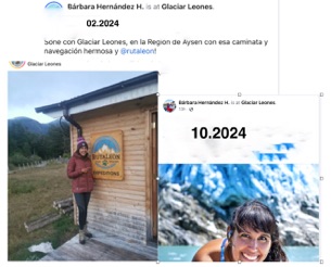 • Probablemente comprometiendo el status de la reserva de la biosfera: la puesta en escena de “influencers” no figura como herramienta de gestión en el Plan de gestión de la reserva de la biosfera de la UNESCO Laguna San Rafael.