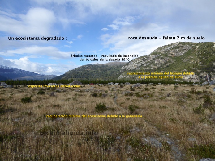 Puede imaginarse este paisaje con 2 m de cobertura de suelo adicional en las colinas, bosque nativo antiguo y vida salvaje desconocida - la situación antes del ecocidio, hace solo 80 años